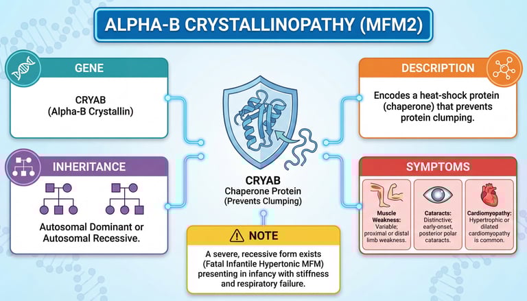 A form of myofibrillar myopathy, a group of chronic neuromuscular disorders characterized at ultrastructural level by disintegration of the sarcomeric Z disk and myofibrils, and replacement of the normal myofibrillar markings by small dense granules, or larger hyaline masses, or amorphous material. MFM2 is characterized by weakness of the proximal and distal limb muscles, weakness of the neck, velopharynx and trunk muscles, hypertrophic cardiomyopathy, and cataract in a subset of patients.